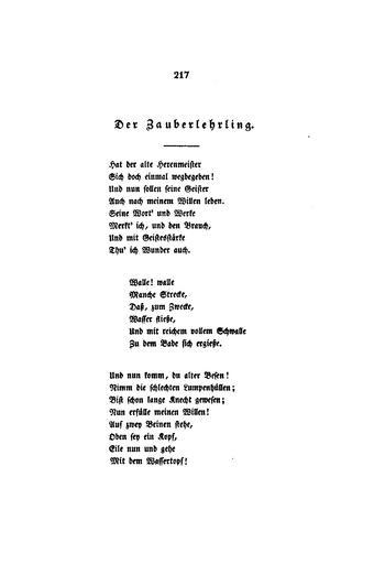 Keywords: 1827 Goethes Werke 01 217.jpg 1827 Goethes Werke 01_ jpg 218 Der Zauberlehrling aus Goethes Werke Vollständige Ausgabe letzter Hand Erster Band S 217 “220 books google com 1827 Johann Wolfgang Goethe PD-old Der Zauberlehrling De Wikisource book leaflet |
