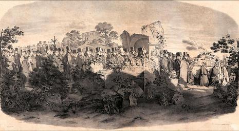 Keywords: 1842 Die Totenfeier der Carolina ... Carl Hoff, Friedrich Capaun-Karlowa, Julius Giere.jpg Diese “ leider nur sehr gering aufgelöste “ Reproduktion einer Lithografie aus dem Jahr 1842 erinnerte an die Abschaffung der unter Kaiser Karl V 1532 erlassenen und bis zum Jahr 1840 geltenden Peinlichen Halsgerichtsordnung der sogenannten Carolina die zur Zeit des Königreichs Hannover 1840 durch das neue Strafgesetzbuch ersetzt wurde Nachdem der Maler Karl Hoff mutmaßlich im Auftrag des Grafen von Schwicheldt-Flachstöckheim eine große Kohlezeichnung angefertigt hatte die sich heute im Bomann-Museum in Celle findet erschien diese verkleinerte und seitenverkehrte Lithografie aus der Druckerei von Julius Giere im Verlag der Celler Buchhandlung von Friedrich Capaun-Karlowa Das originale Blatt ist wie folgt untertitelt Zitat Die Totenfeier der Carolina Zur Erinnerung an Celle und die Zeitgenossen des Königl Hannover Patents vom 8 ten Aug 1840 Carl Hoff lith /Verl von Fr Capaun in Celle/Gedr i d Giereschen Hof-Steindruckerei Hannover ¦ http //www oberlandesgericht-celle niedersachsen de/download/62008/gesamte_Sonderbeilage_der_Celleschen_Zeitung pdf 1842 Karl Hoff 1807 “1862 PD-old Carl Hoff 1807 “1862 Friedrich Capaun-Karlowa Julius Giere Constitutio criminalis Carolina 1842 lithographs Lithographs by artists from Germany Oberlandesgericht Celle 1840 in Lower Saxony |