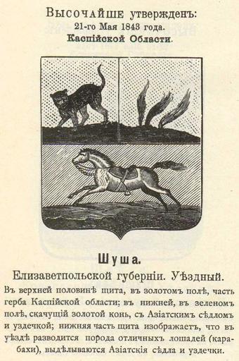 | Keywords: Шуша 1843 из Винклера.jpg Official Russian Empire coat of arms Shusha Ге б Российской Импе ии го ода Шуша Елисаветпольской губе нии в 1843 - Каспийской Области с официальным описанием в Ге бовнике Винкле а Ге б гласный для Ка абаха изоб ажена лошадь по оды ка абах П П фон-Винкле Ге бы го одов губе ний областей и посадов Российской Импе ии внесенные в Полное Соб ание законов с 1649 по 1900 год Дозволено цензу ою С -Пете бу г 20 Июля 1899 года Издание книгото говца Ив Ив Иванова С -Пете бу г Типог афия И Комелова П яжка д 3 1899 \ Scanned by Vizu 1843 \ 1899 published П П фон Винкле \ Pavel von Vinkler PD-old PD-RusEmpire PD-RU-exempt coats of arms Gerbovnik Vinklera - City CoAs Coats of arms of Elisabethpol Governorate Kaspii Oblast Horses courant Russian canting arms Cats in heraldry |
