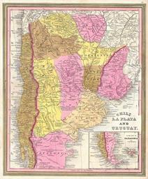 | Keywords: 1846 Burroughs - Mitchell Map of Argentina, Uruguay, Chili in South America - Geographicus - LaPlata-m-1946.jpg This scarce hand colored map is a lithographic engraving of Chili La Plata and Uruguay dating to 1846 by the legendary American Mapmaker S A Mitchell the elder Mostly depicts modern day Argentina There is an inset of Patagonia and Tierra del Fuego on the bottom right There is no engraver listed but this is most likely a Burroughs map H N Burroughs is a mysterious transitional engraver whose work for the Mitchell firm appears in 1846 between that of H S Tanner and Mitchell himself Ristow notes Nothing is known about Burroughs but he was undoubtedly an employee or associate of Mitchell His fine and detailed work appears only in certain hard to find mid 1840s editions of the Mitchell ™s Atlas 1846 Size in 15 12 5 object history credit line accession number LaPlata-m-1946 Geographicus-source PD-old-100 Maps by Samuel Augustus Mitchell Old maps of Argentina Old maps of Chile Old maps of Uruguay 1846 maps Maps in English 1846 in Uruguay 1846 in Argentina 1846 in Chile |
