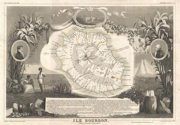Keywords: 1852 Levasseur Map of the Reunion or the Ile. Bourbon, Indian Ocean - Geographicus - IleBourbon-levasseur-1852.jpg This is a fascinating 1857 map of the French department of Ile Bourbon or Reunion Bourbon or Reunion is a volcanic island off the coast of Africa It is one of France's few remaining colonies in the Indian Ocean Reunion is known for its striking natural beauty and marvelous beaches The whole is surrounded by elaborate decorative engravings designed to illustrate both the natural beauty and trade richness of the land There is a short textual history of the regions depicted on both the left and right sides of the map Published by V Levasseur in the 1852 edition of his Atlas National de la France Illustree 1852 undated Size in 17 12 object history credit line accession number IleBourbon-levasseur-1852 Levassuer V <i>Atlas National Illustre des 86 Departements et des Possessions de La France Divise par Arrondissements Cantons et Communea avec La Trace de Toutes Les Routes Chemins de fer et Canaux </i> 1852 edition Geographicus-source PD-old-100 Victor Levasseur - Maps of the world France 1852 maps France Old maps of Réunion |