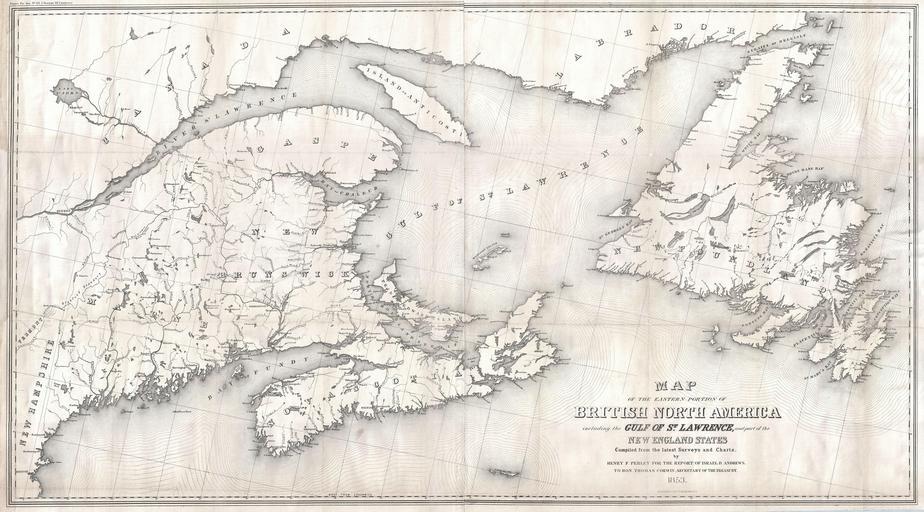 Keywords: 1853 Andrews Map of the Maritime Provinces, New Brunswick, Nova Scotia, Newfoundland - Geographicus - MaritimeProvinces-andrews-1853.jpg A rare beautiful and gigantic map of the Canadian Maritime Provinces of New Brunswick Nova Scotia Newfoundland and Prince Edwards Island Also includes much of Quebec and parts of New York and New England Depicts from Quebec City and the mouth of the St Lawrence River eastward to the Maritime Provinces Offers magnificient detail with regard to the towns cities and rivers systems of this area Prepared by Henry Pearley for Israel D Andrews ™ Report to the Secretary of the Treasury 1853 dated Size in 47 26 object history credit line accession number MaritimeProvinces-andrews-1853 <i>Communication from the Secretary of the Treasury transmitting in compliance with a resolution of the Senate of March 8 1851 the Report of Israel D Andrews consul of the United States for Canada and New Brunswick on the Trade and Commerce of the British North American Colonies and upon the Trade of the Great Lakes and Rivers; also notices of the internal imporvements in each state of the Gulf of Mexico and the Straits of Florida and a Paper on the Cotton Crop of the United States </i> 1853 editon Geographicus-source PD-art Old maps of the Gulf of Saint Lawrence Old maps of New Brunswick Old maps of Nova Scotia Old maps of Newfoundland Old maps of Prince Edward Island 1853 maps of Canada |