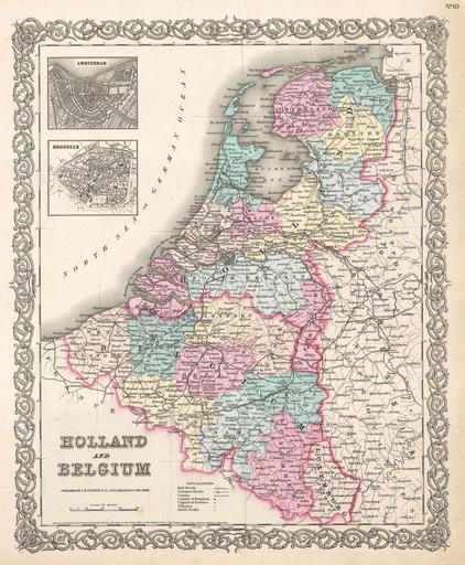 Keywords: 1855 Colton Map of Holland and Belgium - Geographicus - HollandBelgium-colton-1855.jpg A beautiful 1855 first edition example of Colton's map of Holland and Belgium Covers from Friesland to Luxembourg Divided and color coded according to province Insets in the upper left quadrant depict Amsterdam and Brussels Throughout Colton identifies various cities towns forts rivers and assortment of additional topographical details Surrounded by Colton's typical spiral motif border Dated and copyrighted to J H Colton 1855 Published from Colton's 172 William Street Office in New York City Issued as page no 10 in volume 2 of the first edition of George Washington Colton's 1855 Atlas of the World 1855 dated Size in 13 16 5 object history credit line accession number HollandBelgium-colton-1855 Colton G W <i>Colton's Atlas of the World Illustrating Physical and Political Geography</i> Vol 2 New York 1855 First Edition Geographicus-source PD-old-100 Maps by Joseph Hutchins Colton 1855 maps Old maps of the Netherlands Old maps of Belgium |