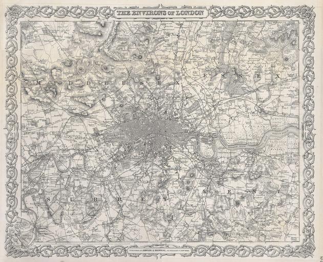 Keywords: 1855 Colton Map or Plan of London, England - Geographicus - London-c-55.jpg This is a superb 1855 map of London and the immediate vicinity Includes parts of Surrey Kent Middlesex and Essex Extends north to Southgate east to Chadwell Heath south to Kingston Mitcham and Bromley and west to Harrow and Isleworth - on a scale of 5/8 of an inch to the mile The whole is beautifully detailed to the level of individual buildings trees canals and roads Includes topographical details as well as farms parks riverways and swamps This is most likely the first map of London to appear in an American atlas Represents map no 4 in the 1855 edition of Colton's Atlas Of The World Published from Colton ™s 172 William Str Office in New York 1855 dated Size in 15 12 object history credit line accession number London-c-55 <i>Colton's Atlas Of The World Illustrating Physical And Political Geography By George W Colton </i> 1855 or 1856 edition Geographicus-source PD-old-100 Maps by Joseph Hutchins Colton Old maps of London 1855 maps |