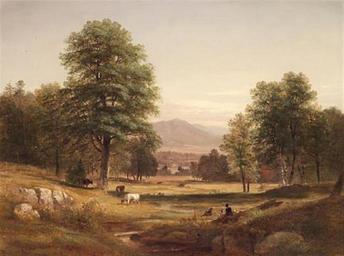 Keywords: 1856 PeacefulAfternoon bySLGerry.png Artwork en Peaceful afternoon with sheep and cows Oil on canvas 30 x 40 in / 76 2 x 101 6 cm Bonhams New York Via artnet 1856 Creator Samuel Lancaster Gerry PD-old-100 Other versions Samuel Lancaster Gerry Images from Bonhams |