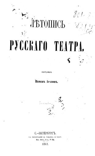 | Keywords: РГБ: Арапов, Пимен Николаевич (1796-1861). Летопись русского театра / Сост. Пимен Арапов. - Санкт-Петербург : тип. Н. Тиблена и К°, 1861. - [4], IV, 386, [1] с., 1 л. фронт. (портр.), 1 л. портр.; 26 <a href="http://dlib.rsl.ru/rsl01003000000/rsl01003571000/rsl01003571875/rsl01003571875.pdf" rel="nofollow">dlib.rsl.ru/rsl01003000000/rsl01003571000/rsl01003571875/...</a> rsl 1861 russianstatelibrary ргб historyoftheatre историярусскоготеатра араповпн | ||||
