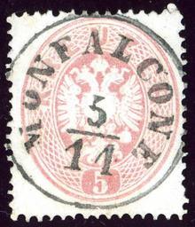 Keywords: 1863 Monfalcone 5kr Kü I.jpg en Stamp of Austrian KK 5 kreuzer issue 1863 cancelled at MONFALCONE Austrian Littoral now Italy 2013-11-23 15 15 38 own Jacquesverlaeken Scanned object > 100 years old cc-zero Uploaded with UploadWizard 1863 stamps of Austria Postmarks in Friuli-Venezia Giulia Region Monfalcone Pink stamps Animals on stamps to be categorised by country |