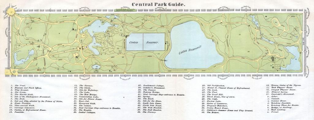 | Keywords: 1866 Map of Central Park, New York City, New York - Geographicus - CentralParkGuide-mcny-1869.jpg A rare hand-colored map of New York City ™s Central Park prepared and printed for inclusion in the 1869 edition of Manual of the Corporation of the City of New York Depicts the park as a whole and includes pathways lakes buildings individual trees rocks and elevation measurements The streets and avenues surrounding the park are labeled as are the various landmarks of Central Park “ the Knoll The Ramble the Mall and some 55 others This extraordinary map reveals Central Park as conceived by the Landscape Architects and indeed artists Vaux and Olmstead Vaux and Olmstead were awarded the task of designing Central Park in 1853 by the City Common Council Olmstead ™s vision drove the overall design while Vaux concentrated his attentions on bridges buildings and other structures within the park The creation of Central Park which was to consist of some 800 acres of public forest pathways promenades lakes bridges and meadows was a seminal moment in civic urban design The park itself was designed as a whole with every tree pond and bench meticulously planned Olmstead wrote Every foot of the parks surface every tree and bush as well as every arch roadway and walk and been placed where it is for a purpose Historian Gloria Deak writes There was a staggering amount of work to be done to transform the area into a blend of pastoral and woodland scenery This involved the design and construction of roadways tunnels bridges arches stairways fountains benches lamp posts gates fences and innumerable other artifacts It also involved the supervision of an army of about five thousand laborers ¦Olmsted to whom most of the credit goes insisted on seeing the multidimensional project as a single work of art which he was mandated to create For this purpose he ventured to assume to himself the title of ˜artist ™ Today because of Vaux and Olmstead ™s efforts New York Yorkers ourselves included have the privilege of enjoying what is perhaps the finest example of a planned urban public recreation area in the world 1866 Size in 16 7 object history credit line accession number CentralParkGuide-mcny-1869 Geographicus-source PD-art Maps of Central Park 1866 maps Manhattan Old maps of Manhattan New York City 1866 |