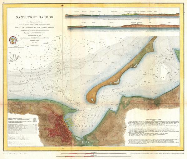 Keywords: 1866 U.S. Coast Survey Map of Nantucket Harbor, Nantucket - Geographicus - NantucketHarbor-uscs-1866.jpg An extraordinary 1866 U S Coast Survey nautical chart or map of Nantucket Harbor Massachusetts Covers Nantucket Harbor on the northern part of Nantucket roughly from Whale's Rock to Pocomo Head Includes the town of Nantucket as well as Coatue Beach This is one of the rarest and most desirable charts issued by the U S Coast Survey Offers superb nautical and inland detail Includes countless depth soundings and inland detail to the level of individual streets wharves and buildings Identifies the Bug Lights Range Light Coatne Point Brant Pint Pumny's Point and Shemo Point among others Also identifies various undersea dangers such as flats shoals and rocks There are two profile views in the upper right quadrant Both views detail Nantucket Harbor from various directions and distances Notes on the construction of this chart appear in the lower left hand quadrant Sailing directions can be found in the lower right quadrant The topography was executed H L Whiting The Triangulation was accomplished by A D Bache and C M Eakin The Hydrography was completed by a party under the command of C H Davis This chart was prepared under the supervision of A D Bache one of the most influential Superintendents in the history of the Coast Survey Issued in the 1867 supplement to the 1865 Superintendent's Report 1866 dated Size in 15 15 object history credit line accession number NantucketHarbor-uscs-1866 <i>Report of the Superintendant of the United States Coast Survey </i> Washington 1867 Supplement to the 1865 edition Geographicus-source PD-art United States Coast Survey maps Maps of Massachusetts Old maps of Nantucket |