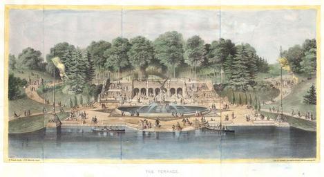 | Keywords: 1869 Knapp View of Bethesda Terrace, Central Park, New York City - Geographicus - Terrace-centralpark-1868.jpg An unusual little view of Bethesda Terrace Central Park Bethesda Terrace is located at roughly 72nd street in the heart of New York City ™s Central Park Depicts the Terrace from a south facing perspective over the Lake towards the Bethesda Fountain and the sculpture Angel of the Waters The arched double staircase behind the fountain was designed by Jacob Wrey Mould It is important to realize that this part of the park was merely planned not completed when this view was made The central sculpture Angel of the Waters by Emma Stebbins was not completed until 1873 Vaux and Olmsted envisioned the terrace as a meeting place in the heart of the park Today it is one of the most picturesque parts of the park and a popular hangout for artists and musicians This view was published for inclusion in the 1869 13th Annual Report of the Commissioners of Central Park On the Central Park Vaux and Olmsted were awarded the task of designing Central Park in 1853 by the City Common Council Olmsted ™s vision drove the overall design while Vaux concentrated his attentions on bridges buildings and other structures within the park The creation of Central Park which was to consist of some 800 acres of public forest pathways promenades lakes bridges and meadows was a seminal moment in civic urban design The park itself was designed as a whole with every tree pond and bench meticulously planned Olmsted wrote Every foot of the parks surface every tree and bush as well as every arch roadway and walk and been placed where it is for a purpose Historian Gloria Deak writes There was a staggering amount of work to be done to transform the area into a blend of pastoral and woodland scenery This involved the design and construction of roadways tunnels bridges arches stairways fountains benches lamp posts gates fences and innumerable other artifacts It also involved the supervision of an army of about five thousand laborers ¦Olmsted to whom most of the credit goes insisted on seeing the multidimensional project as a single work of art which he was mandated to create For this purpose he ventured to assume to himself the title of ˜artist ™ Today because of Vaux and Olmsted ™s efforts New Yorkers ourselves included have the priviledge of enjoying what is perhaps the finest example of a planned urban public recreation area in the world 1869 Size in 14 5 8 object history credit line accession number Terrace-centralpark-1868 Geographicus-source PD-art Bethesda Terrace Historic views of Central Park |