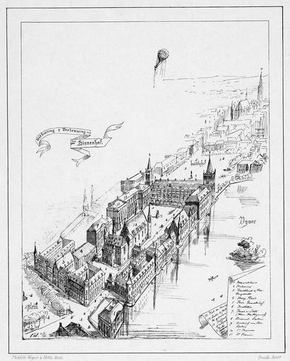 Keywords: 1876. Plan voor uitbreiding en verbouwing van het Binnenhof, Den Haag.png nl In 1876 maakte Eduard Asser 1809-1894 een fotolithogravure van een nieuw- en verbouwplan voor het Binnenhof in Den Haag De onbekende ontwerper van dat plan probeerde daarbij zoveel mogelijk om de bestaande gebouwen in te passen en als eindresultaat een meer uniform geheel te creëren Hij ontzag daarbij onder andere de 13e-eeuwse Ridderzaal en het Mauritshuis maar ook de 18e-eeuwse gebouwen van de Tweede Kamer en de 17e-eeuwse vergaderzaal van de Eerste Kamer Op sommige plekken voegde hij slechts een torenspits toe om het geheel een meer samenhangend karakter te geven en In 1876 the Dutchman Eduard Asser 1809-1894 created a photolithograph of an expansion- and renovation plan for the Parliament Buildings in The Hague The unknown designer of that plan tried to fit within the existing buildings as fargoing as possible aiming to create a more uniform ensemble a final result He left the 13th-century Knight's Hall and the 17th-century Mauritshuis untoughed but also spared the 18th-century buildings of the Lower House and the 17th-century hall of the Senate At some places he only added a spire to give the whole a more coherent character de Im Jahr 1876 dem niederländischen Eduard Asser 1809-1894 machte ein Photolithographie von eines Expansions- und Erneuerungsplan für die Gebäude des Parlament und Senat in Den Haag Der unbekannten entwarfer versuchte innerhalb der bestehenden Gebäude wie möglich ein zu passen mit dem Ziel eine gleichmäßigere Komplex zu schaffen Er verließ das 13 Jahrhundert Rittersaal und die Mauritshuis 17 Jahrhundert unbeeinträchtigt und auch die Gebäude des Abgeordnetenhauses aus dem 18 Jahrhundert und die Halle aus dem 17 Jahrhundert des Senats ersparte er An manchen Stellen fügte er hinzu nur einen Turm um dem Ganzen eine kohärentere Charakter zu geben fr En 1876 le néerlandais Eduard Asser 1809-1894 conçu un photolithogravure d'un plan d'une concepteur inconnue pour l'expansion- et la rénovation des édifices du Parlement et du Sénat à La Haye Il a essayé de tenir dans les bâtiments existants comme dans la mesure du possible visant à créer un ensemble plus uniforme comme résultat final Il a quitté intacte le Salle des Chevaliers du 13ème siècle et le Mauritshuis du 17ème siècle mais il a aussi épargné les bâtiments des Parlement du 18ème siècle et la salle des Sénat du 17ème siècle Parfois il a seulement ajouté un clocher pour les bâtiments en vue de donner à l'ensemble un caractère plus cohérent 1876 Universiteitsbibliotheek Leiden Topografie van Nederland PK-P-138 064 Eduard Isaac Asser 1809-1894 other versions 52 37269 4 89299 Custom license marker 2015 09 06 PD-old-100-1923 Uploaded with UploadWizard Binnenhof in art Ridderzaal History of the Mauritshuis 1876 Hofvijver The Hague in the 1870s 1876 in the Netherlands Eduard Isaac Asser |
