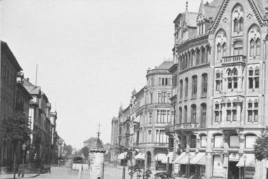 Keywords: 1877 Blick vom Cafe Robby später Kröpcke Richtung Steintor cropped.jpg Blick im Jahr 1877 vom Standort des Café Robby später nach dem Oberkellner Wilhelm Kröpcke in Café Kröpcke umbenannt an der Ecke Bahnhofstraße/Rathenaustraße durch die Georgstraße in Richtung Steintor Die Georgstraße entstand ab 1788 durch die Enfestigung der Altstadt von Hannover und befand sich daher anfänglich in einer Randlage der noch mittelalterlich geprägten Stadt Daher erfolgte die Bebauung - trotz finanzieller Förderung durch die Stadtverwaltung - anfangs nur sehr zögerlich Ein Hinderungsgrund war auch die Auflage an potentielle Bauherren neue Gebäude nur in Massivbauweise zu errichten Erst nach der - zögerlichen- Entscheidung des Königs von Hannover zum Bau des ersten Eisen- Bahnhofs zunächst weit abgelegen auf einem Kartoffelacker in der dann von Georg Ludwig Friedrich Laves angelegten Ernst-August-Stadt Zitat rückte die Georgstraße als Querachse zwischen dem neuen Stadtteil und der alten Stadt in eine Zentrallage Die aus der Perspektive des Café Robby Kröpcke aufgenommene Fotografie von 1877 vermittelt trotz großstädtischer Bebauung noch den Eindruck einer beschaulichen Promenadenallee Das Zitat ist entnomen von Andreas Urban und Ute Ziegan Stadtbilder Hannover 1870 - 1900 dem Katalog zur gleichnamigen Ausstellung im Historischen Museum Hannover das die selbe Fotografie besitzt jedoch mit einem größeren Ausschnitt Etwa an der Stelle der in der Bildmitte erkennbaren Litfaßsäule wurde später die Kröpcke-Uhr aufgestellt Ganz rechts ist das Haus Heinemann zu sehen dahinter das Bahlsen-Haus in dem später Theodor Lessing wohnte Am rechten Bildrand ist der Vorbau des ehemaligen Polytechnikums zu sehen des Vorläuferbaus der heutigen Gottfried Wilhelm Leibniz Universität Hannover Hier brach später - nach der Ausrufung des Deutschen Kaiserreichs und der danach benannten Gründerzeit - der Bauunternehmer Ferdinand Wallbrecht die Karmarschstraße durch die erste durchgängige Querstraße durch Hannover für die Laves zuvor und noch im Königreich Hannover mehrfach vergeblich Pläne seinem König vorgelegt hatte Scan vom Original Bernd Schwabe in Hannover 1877 unidentified photographer 1877 Blick vom Café Robby später Kröpcke und Haus Heinemann in Hannover durch die Georgstraße Richtung Steintor Bildseite CDV jpg <gallery> File 1877 Blick vom Café Robby später Kröpcke und Haus Heinemann in Hannover durch die Georgstraße Richtung Steintor Rückseite CDV jpg Rückseite mit der Angabe ca 1880 </gallery> PD-old 1877 in Hannover Haus Heinemann Hannover Advertising columns in Hannover Kröpcke-Uhr Bahlsen-Haus Hannover Kröpcke-Center Hannover Rathenaustraße Hannover |