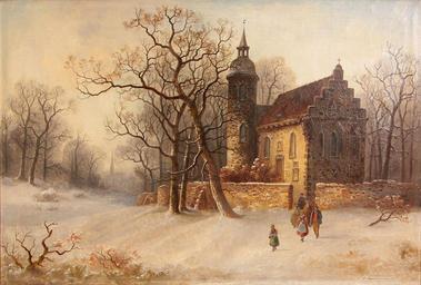 Keywords: 1877 Gustav Hausmann, Winterlandschaft mit Kirche, Öl auf Leinwand, signiert.jpg Winterlandschaft mit Kirche ist dieses Ölgemälde 45 x 64 cm des Malers Gustav Hausmann tituliert der dieses Bild neben der Künstlersignatur mit dem Jahr 1877 datierte Ob es sich bei der belebten Ansicht mit der zweiten im Hintergrund zu erkennenden Kirche um ein Phantasieprodukt oder um einen seinerzeit real existierenden Ort handelt muss die weitere Forschung ergeben http //www google de/imgres imgurl http 3A 2F 2Fwww herr-auktionen de 2Fuploads 2Fpics 2F72_0285 jpg imgrefurl http 3A 2F 2Fwww herr-auktionen de 2F1 2Fcatalogues 2Fauction-71 2Fdetailansicht 2Farticle 2Fgustav-hausmann-1827-1899 2F 3Ftx_ttnews 255Byear 255D 3D1970 26tx_ttnews 255Bmonth 255D 3D01 26tx_ttnews 255Bday 255D 3D01 26cHash 3Df8eb0d9ff5e0d582f2cabd7835ca3a56 h 800 w 1122 tbnid EXyteD7cixEIyM 3A zoom 1 docid DB5sPIoKBgbtLM ei ek9zVYHvDYmnU_vGgMAB tbm isch iact rc uact 3 dur 858 page 1 start 0 ndsp 20 ved 0CCQQrQMwAQ 1877 Gustav Hausmann Gustav Hausmann 19th-century oil on canvas paintings in Germany 1877 paintings in Germany PD-Art |