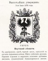 | Keywords: Якутская обл 1878 из Винклера.jpg Official Russian Empire coats of arms Yakutsk Oblast Ге б Российской Импе ии Якутской области с официальным описанием в Ге бовнике Винкле а П П фон-Винкле Ге бы го одов губе ний областей и посадов Российской Импе ии внесенные в Полное Соб ание законов с 1649 по 1900 год Дозволено цензу ою С -Пете бу г 20 Июля 1899 года Издание книгото говца Ив Ив Иванова С -Пете бу г Типог афия И Комелова П яжка д 3 1899 \ Scanned by Vizu 1878 / 1899 published П П фон Винкле \ Pavel von Vinkler PD-old PD-RusEmpire PD-RU-exempt <gallery> File Якутская область из Бенке jpg File Якутская область ВД Бенке jpg File Якутская область изд Сукачова JPG File Coat of Arms of Yakutsk oblast Russian empire png </gallery> <references/> Gerbovnik Vinklera - Governorate Oblast CoAs Yakutsk Oblast |