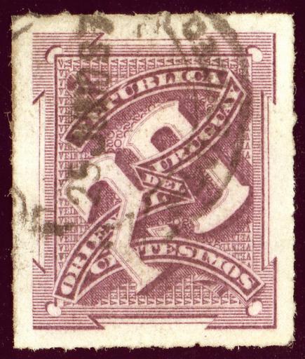 | Keywords: 1884 Uruguay 20c Mi61.jpg en Stamp of Uruguay 20 centesimos lilac issue 1884 engraved rouletted 8 used in 1887 Michel N°61 2014-04-29 15 35 17 own Jacquesverlaeken Scan of a cancelled stamp > 100 years old cc-zero Stamps of Uruguay 1884 Stamps printed by the American Bank Note Company Uploaded with UploadWizard Lilac stamps Rouletted stamps |
