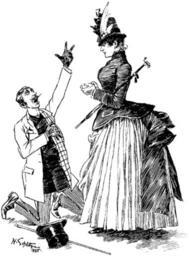 Keywords: 1885-proposal-caricature.gif 1885 caricature of a wedding proposal -- she's wearing the latest bustled fashions and he seems to be so desperate that he's down on two knees not just one They seem to have been out walking perhaps to gain some privacy as seen from his sturdy waistcoat dark gloves and cane and her parasol jacket and vaguely pseudo-Tyrolean hat Signature is H Schlittzen PD-old-70-1923 19th-century caricatures Schlittzen Heiratsversprechen 1880s fashion Schlitzzen Bustle dresses Schlittzen Illustrations of top hats Schlittzen People with canes in art Schlittzen Line art of women Schlittzen Marriage proposals Schlittzen Waistcoats in art Schlittzen People with gloves in art Schlittzen Kneeling males Artworks missing infobox template 1885 cartoons |