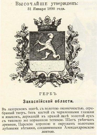 | Keywords: Закаспийская обл 1890 из Винклера.jpg Official Russian Empire coat of arms Zakaspii Oblast Ге б Российской Импе ии Закаспийской области с официальным описанием в Ге бовнике Винкле а П П фон-Винкле Ге бы го одов губе ний областей и посадов Российской Импе ии внесенные в Полное Соб ание законов с 1649 по 1900 год Дозволено цензу ою С -Пете бу г 20 Июля 1899 года Издание книгото говца Ив Ив Иванова С -Пете бу г Типог афия И Комелова П яжка д 3 1899 \ Scanned 1890 \ 1899 published П П фон Винкле \ Pavel von Vinkler PD-old PD-RusEmpire PD-RU-exempt <references/> Gerbovnik Vinklera - Governorate Oblast CoAs Zakaspii Oblast |