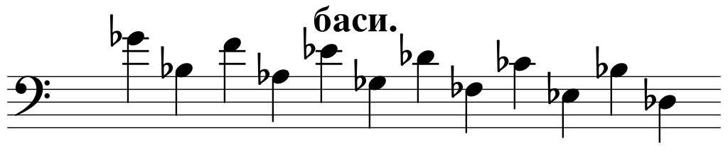 | Keywords: Зоря. Ноти. 1894. 10. 232.2.svg uk Ілюст ація до статті иколи Лисенка а одні музичні ст ументи на Вк аїнї Цимбали Баси 1894-05-27 Зо я часопис 10 с 232-233 икола Лисенко other versions Часопис Зо я 1894 10 pdf Hidden background ECECEC; white;color black border 1px grey solid; padding 2px Created by MuseScore <nowiki> < xml version 1 0 encoding UTF-8 > <museScore version 2 06 > <programVersion>2 0 2</programVersion> <programRevision>f51dc11</programRevision> <Score> <LayerTag id 0 tag default ></LayerTag> <currentLayer>0</currentLayer> <Synthesizer> </Synthesizer> <Division>480</Division> <Style> <staffUpperBorder>6</staffUpperBorder> <page-layout> <page-height>119 055</page-height> <page-width>566 929</page-width> <page-margins type even > <left-margin>5 66929</left-margin> <right-margin>5 66929</right-margin> <top-margin>56 6929</top-margin> <bottom-margin>113 386</bottom-margin> </page-margins> <page-margins type odd > <left-margin>5 66929</left-margin> <right-margin>5 66929</right-margin> <top-margin>0</top-margin> <bottom-margin>0</bottom-margin> </page-margins> </page-layout> <Spatium>1 764</Spatium> </Style> <showInvisible>1</showInvisible> <showUnprintable>1</showUnprintable> <showFrames>1</showFrames> <showMargins>0</showMargins> <metaTag name arranger ></metaTag> <metaTag name composer ></metaTag> <metaTag name copyright ></metaTag> <metaTag name creationDate >2015-11-23</metaTag> <metaTag name lyricist ></metaTag> <metaTag name movementNumber ></metaTag> <metaTag name movementTitle ></metaTag> <metaTag name platform >Microsoft Windows</metaTag> <metaTag name poet ></metaTag> <metaTag name source ></metaTag> <metaTag name translator ></metaTag> <metaTag name workNumber ></metaTag> <metaTag name workTitle ></metaTag> <PageList> <Page> <System> </System> </Page> </PageList> <Part> <Staff id 1 > <StaffType group pitched > <name>stdNormal</name> </StaffType> <bracket type -1 span 0 /> </Staff> <trackName>Lute</trackName> <Instrument> <longName>Lute</longName> <shortName>Lt </shortName> <trackName>Lute</trackName> <minPitchP>33</minPitchP> <maxPitchP>79</maxPitchP> <minPitchA>33</minPitchA> <maxPitchA>79</maxPitchA> <instrumentId>pluck lute</instrumentId> <StringData> <frets>13</frets> <string>43</string> <string>48</string> <string>53</string> <string>57</string> <string>62</string> <string>67</string> </StringData> <Articulation> <velocity>100</velocity> <gateTime>100</gateTime> </Articulation> <Articulation name staccatissimo > <velocity>100</velocity> <gateTime>33</gateTime> </Articulation> <Articulation name staccato > <velocity>100</velocity> <gateTime>50</gateTime> </Articulation> <Articulation name portato > <velocity>100</velocity> <gateTime>67</gateTime> </Articulation> <Articulation name tenuto > <velocity>100</velocity> <gateTime>100</gateTime> </Articulation> <Articulation name marcato > <velocity>120</velocity> <gateTime>67</gateTime> </Articulation> <Articulation name sforzato > <velocity>120</velocity> <gateTime>100</gateTime> </Articulation> <Channel> <program value 25 /> <synti>Fluid</synti> </Channel> </Instrument> </Part> <Staff id 1 > <Measure number 1 len 12/4 > <Clef> <concertClefType>F</concertClefType> <transposingClefType>F</transposingClefType> </Clef> <TimeSig> <visible>0</visible> <sigN>6</sigN> <sigD>4</sigD> <textN>12</textN> <textD>4</textD> <Groups> <Node pos 4 action 512 /> <Node pos 8 action 512 /> <Node pos 12 action 512 /> <Node pos 16 action 512 /> <Node pos 20 action 512 /> <Node pos 24 action 273 /> <Node pos 28 action 512 /> <Node pos 32 action 512 /> <Node pos 36 action 512 /> <Node pos 40 action 512 /> <Node pos 44 action 512 /> </Groups> <showCourtesySig>1</showCourtesySig> </TimeSig> <StaffText> <pos x 14 3991 y -6 09987 /> <style>System</style> <size>14</size> <bold>1</bold> <text>баси </text> </StaffText> <Chord> <durationType>quarter</durationType> <Note> <Accidental> <subtype>flat</subtype> </Accidental> <pitch>66</pitch> <tpc>8</tpc> </Note> </Chord> <Chord> <durationType>quarter</durationType> <Note> <Accidental> <subtype>flat</subtype> </Accidental> <pitch>58</pitch> <tpc>12</tpc> </Note> </Chord> <Chord> <durationType>quarter</durationType> <Note> <pitch>65</pitch> <tpc>13</tpc> </Note> </Chord> <Chord> <durationType>quarter</durationType> <Note> <Accidental> <subtype>flat</subtype> </Accidental> <pitch>56</pitch> <tpc>10</tpc> </Note> </Chord> <Chord> <durationType>quarter</durationType> <Note> <Accidental> <subtype>flat</subtype> </Accidental> <pitch>63</pitch> <tpc>11</tpc> </Note> </Chord> <Chord> <durationType>quarter</durationType> <Note> <Accidental> <subtype>flat</subtype> </Accidental> <pitch>54</pitch> <tpc>8</tpc> </Note> </Chord> <Chord> <durationType>quarter</durationType> <Note> <Accidental> <subtype>flat</subtype> </Accidental> <pitch>61</pitch> <tpc>9</tpc> </Note> </Chord> <Chord> <durationType>quarter</durationType> <Note> <Accidental> <subtype>flat</subtype> </Accidental> <pitch>52</pitch> <tpc>6</tpc> </Note> </Chord> <Chord> <durationType>quarter</durationType> <Note> <Accidental> <subtype>flat</subtype> </Accidental> <pitch>59</pitch> <tpc>7</tpc> </Note> </Chord> <Chord> <durationType>quarter</durationType> <Note> <Accidental> <subtype>flat</subtype> </Accidental> <pitch>51</pitch> <tpc>11</tpc> </Note> </Chord> <Chord> <durationType>quarter</durationType> <Note> <Accidental> <role>1</role> <subtype>flat</subtype> </Accidental> <pitch>58</pitch> <tpc>12</tpc> </Note> </Chord> <Chord> <durationType>quarter</durationType> <Note> <Accidental> <subtype>flat</subtype> </Accidental> <pitch>49</pitch> <tpc>9</tpc> </Note> </Chord> <BarLine> <subtype>end</subtype> <span>1</span> <visible>0</visible> </BarLine> </Measure> </Staff> </Score> </museScore> </nowiki> end PD-old-70-1923 Uploaded with UploadWizard Sample sheet music for Зо я Sheet music for hammered dulcimers |