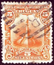 Keywords: 1900 Uruguay 5m Artigas Mi141.jpg en Stamp of Uruguay 5 milésimos issue 1900 Statue of Artigas in San José Michel N°141 2014-06-21 17 40 04 own Jacquesverlaeken Scan of a cancelled stamp > 100 years old cc-zero Postmarks of Uruguay Stamps printed by Waterlow Uploaded with UploadWizard Stamps of Uruguay 1900 Orange stamps Monumento a Artigas San José |