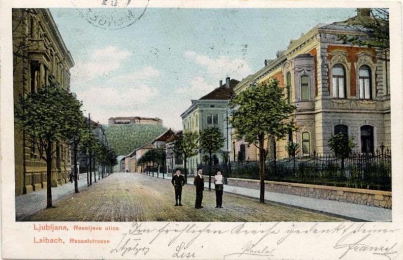Keywords: 1900s postcard of Resljeva street.jpg Postcard of Resljeva street W1H0B17R author s 1900 PD-Slovenia 1900s postcards of Ljubljana Postcards of streets in Ljubljana Postcards of Resljeva cesta