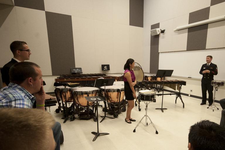 Keywords: indoor 120219-N-ZS489-001 COMMERCE, Tx. (Feb. 19, 2014) Musicians of the U.S. Navy Band perform recitals and facilitate masterclasses for students at Texas A&M University- Commerce prior to the U.S. Navy Concert Band's performance on campus that evening. The U.S. Navy Concert Band, based in Washington and commanded by Capt. Brian O. Walden, is currently on a 24-day tour of seven states. One of the band's primary responsibilities, national tours increase awareness of the Navy in palces that don't see the Navy at work on a regular basis. (U.S. Navy photo by Musician 1st Class Adele Mayne/Released) 120219-N-ZS489-001 COMMERCE, Tx. (Feb. 19, 2014) Musicians of the U.S. Navy Band perform recitals and facilitate masterclasses for students at Texas A&M University- Commerce prior to the U.S. Navy Concert Band's performance on campus that evening. The U.S. Navy Concert Band, based in Washington and commanded by Capt. Brian O. Walden, is currently on a 24-day tour of seven states. One of the band's primary responsibilities, national tours increase awareness of the Navy in palces that don't see the Navy at work on a regular basis. (U.S. Navy photo by Musician 1st Class Adele Mayne/Released) |