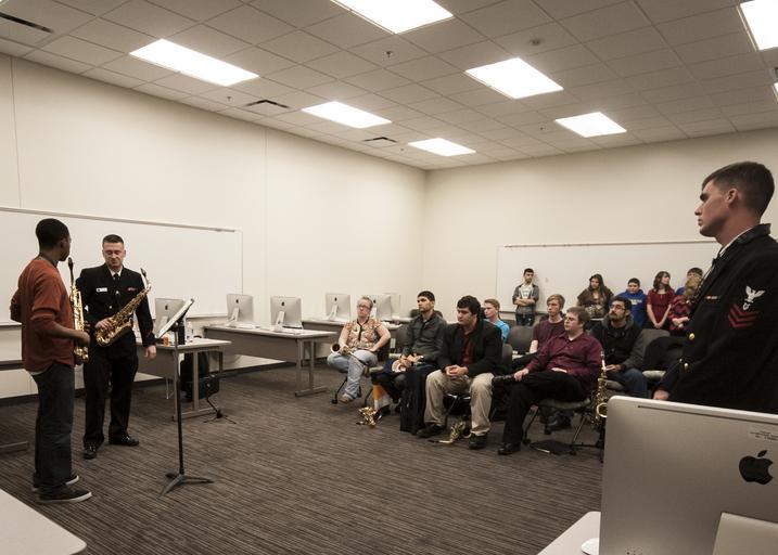 Keywords: indoor 120219-N-ZS489-001 COMMERCE, Tx. (Feb. 19, 2014) Musicians of the U.S. Navy Band perform recitals and facilitate masterclasses for students at Texas A&M University- Commerce prior to the U.S. Navy Concert Band's performance on campus that evening. The U.S. Navy Concert Band, based in Washington and commanded by Capt. Brian O. Walden, is currently on a 24-day tour of seven states. One of the band's primary responsibilities, national tours increase awareness of the Navy in palces that don't see the Navy at work on a regular basis. (U.S. Navy photo by Musician 1st Class Adele Mayne/Released) 120219-N-ZS489-001 COMMERCE, Tx. (Feb. 19, 2014) Musicians of the U.S. Navy Band perform recitals and facilitate masterclasses for students at Texas A&M University- Commerce prior to the U.S. Navy Concert Band's performance on campus that evening. The U.S. Navy Concert Band, based in Washington and commanded by Capt. Brian O. Walden, is currently on a 24-day tour of seven states. One of the band's primary responsibilities, national tours increase awareness of the Navy in palces that don't see the Navy at work on a regular basis. (U.S. Navy photo by Musician 1st Class Adele Mayne/Released)
