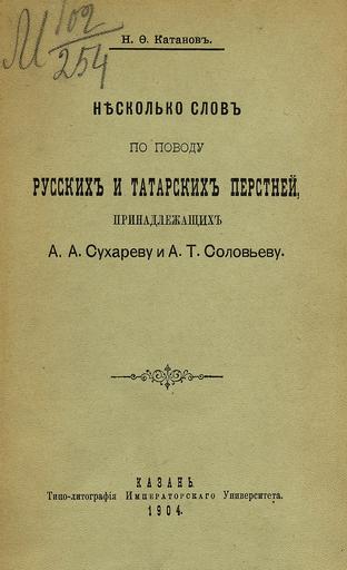 Keywords: Источник: РГБ Катанов, Николай Федорович (1862-1922). ... Несколько слов по поводу русских и татарских перстней, принадлежащих А.А. Сухареву и А.Т. Соловьеву / Н.Ф. Катанов. - Казань : типо-лит. Имп. ун-та, 1904. - 20 с. : ил.; 24. Хранение: M 102/254; Электронный ресурс <a href="http://dlib.rsl.ru/rsl01003000000/rsl01003721000/rsl01003721376/rsl01003721376.pdf" rel="nofollow">dlib.rsl.ru/rsl01003000000/rsl01003721000/rsl01003721376/...</a> 1904 rsl кольцо russianstatelibrary ргб катанов