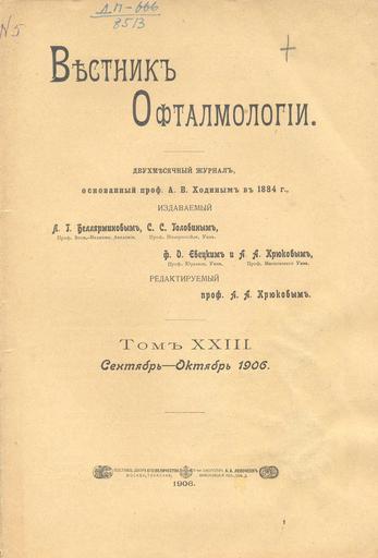 View Original:Вестник офтальмологии. 1906. Сентябрь-октябрь. — Тит. лист.jpg (2008x2961)