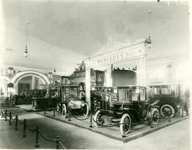View Original:1907. Автомобили фирмы Мерседес -экспонаты Первой международной автомобильной выставки в Михайловском манеже.jpg (1573x1227)
