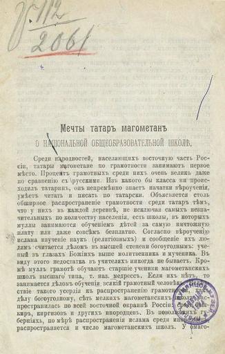 Keywords: Коблов, Яков Дмитриевич (1876-). Мечты татар магометан о национальной общеобразовательной школе / [Я. Коблов]. - Казань : типо-лит. Имп. ун-та, 1908. - 20 с.; 22. Авт. указан в конце текста Без тит. л. и обл. <a href="http://dlib.rsl.ru/rsl01003000000/rsl01003749000/rsl01003749405/rsl01003749405.pdf" rel="nofollow">dlib.rsl.ru/rsl01003000000/rsl01003749000/rsl01003749405/...</a> 1908 ленинка ргб оцифровка противомусульманскаямиссия электронныйресурсргб историяказани коблов историятатарстана