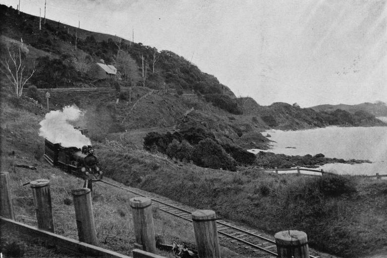 | Keywords: tasmania blackandwhite monochrome outdoor black and white An A class 4-4-0 heads an eastbound passenger train at Three Sisters between Penguin and Ulverstone. M N Nichols photo An A class 4-4-0 heads an eastbound passenger train at Three Sisters between Penguin and Ulverstone. M N Nichols photo |