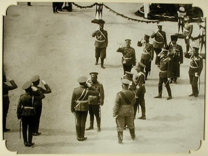 | View Original: | 1914-1915. 06. Император Николай II принимает рапорт начальникапочётного караула 59-го пехотного Люблинского полка.jpg (500x376) | |||