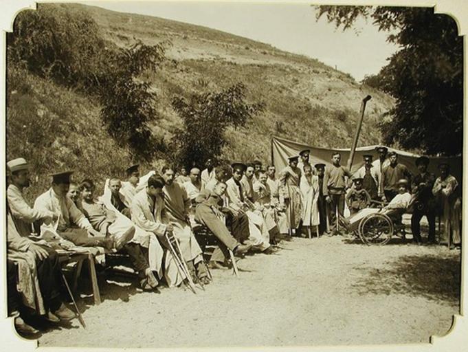 View Original:1914-1915. 23. Группа раненых во время лечения солнечными ваннами на Куяльницком лимане.jpg (500x376)