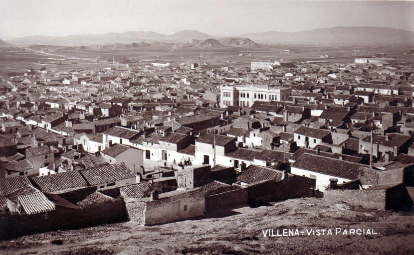 Keywords: 1925. Vista parcial (barrio las Cruces hacia Yecla).jpg Vista parcial de Villena en primer plano el barrio de las Cruces; bajo destaca el colegio Joaquín María López las escuelas nuevas En el límite noroeste destacan el colegio Salesiano y la plaza de Toros y al fondo se alzan los Cabezos y la Sierra Alhácera Fotografía 1925 author 38 38 0 77 N 0 51 31 05 W scale 3125 Historical images of Villena PD-old