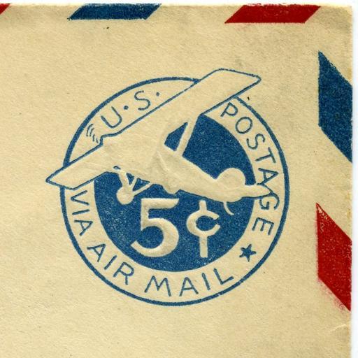Keywords: 1929 US Airmail Stamped Envelope Indicium - 5 cents.jpg en 1929 U S airmail stamped envelope indicium - 5 cents denomination 1929 U S Post Office Department scan of stamped envelope owned by contributor U S Post Office Department PD-USGov Uploaded with UploadWizard Cut squares of the United States |