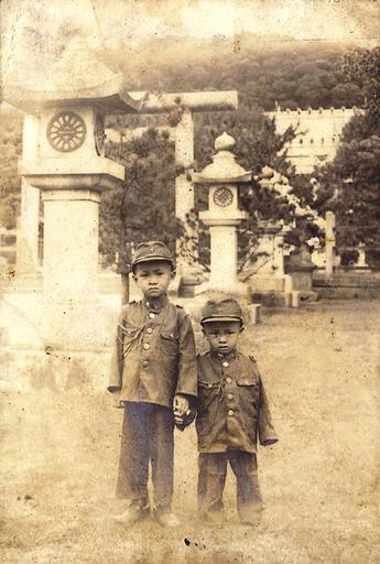 View Original:1937臺灣原住民泰雅族領袖樂信.瓦旦之子茂秀與敞夫攝於臺灣神社 Indigenous Taiwanese Atayal children in front of Taiwan Shrine.JPG (431x640)
