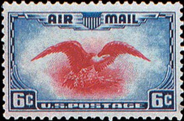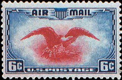 Keywords: 1938 airmail stamp C23.jpg en May 14 1938 <br /> 5¢ Carmine Blue <br /> Eagle Shield <br /> C23 <br /> <br /> 349 946 500 U S Post Office Bureau of Engraving and Printing; Scanned by uploader 1938-05-14 Airmail stamps of the United States 1938 stamps PD-USGov |