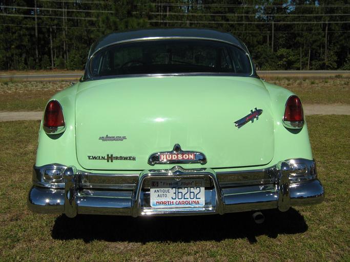 | Keywords: 1954 Hudson Hornet Twin H sedan green vr.jpg en 1954 Hudson Hornet A four-door Step-Down sedan finished in two-tone paint light green with darker green roof This car has the Twin-H-Power 308 cu in 5 0 L straight-six engine producing 170 hp 127 kW Rear view tail end picture taken at a local car show in North Carolina own 2010-10-09 CZmarlin ” Christopher Ziemnowicz releases all rights but a photo credit would be appreciated if this image is used anywhere other than Wikipedia Please leave a note at Wikipedia http //en wikipedia org/w/index php title User_talk CZmarlin action edit section new here Thank you en I the copyright holder of this work hereby release it into the public domain This applies worldwide Hudson trunk emblem <br> Hudson Hornet fender emblem <br> Hudson rocket trunk lid emblem <br> Hudson Twin H emblem on trunk <br> Hudson C-pillar detail <br> Hudson front door detail <br> Hudson front door detail <br> Hudson Twin H engine detail <br> Hudson Twin H engine detail <br> Hudson Twin H engine detail <br> Hudson Twin H engine detail <br> Hudson front end detail <br> Hudson hood scoop detail <br> Hudson interior detail <br> Hudson interior detail <br> Hudson interior detail <br> Hudson interior detail <br> Hudson interior detail <br> Hudson interior detail <br> Hudson left front <br> Hudson left rear <br> Hudson left side view <br> Hudson left rear <br> Hudson right front hood closed <br> Hudson right front hood open <br> Hudson right rear trunk closed <br> Hudson right rear trunk open <br> Hudson taillamp tailfin detail <br> Hudson front view head on <br> 1954 Hudson automobiles Hudson Hornet Rear views of automobiles License plates of North Carolina |