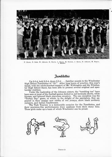 | Keywords: sachem sachems logo winchester high school aberjona yearbook sachemsachemslogowinchesterhighschoolaberjonayearbook native american nativeamerican blackandwhite monochrome text photo border black and white "Tumblettes ...[At the ]Turkey Day game, to the delight of the spectators, they appeared in their new snappy new outfits of red jerseys, short black corduroy jumpers, and Indian headdresses." Three sketches of native girl with a headband, feather, light hair, and a dress doing tumbling moves. Aberjona yearbook 1955, Native images from Winchester, MA "Tumblettes ...[At the ]Turkey Day game, to the delight of the spectators, they appeared in their new snappy new outfits of red jerseys, short black corduroy jumpers, and Indian headdresses." Three sketches of native girl with a headband, feather, light hair, and a dress doing tumbling moves. Aberjona yearbook 1955, Native images from Winchester, MA |