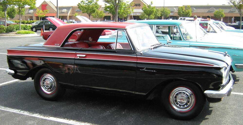 | Keywords: 1963 Rambler American 440-H black-red MD sr.jpg en 1963 Rambler American two-door hardtop a compact car made by American Motors Corporation AMC This is the top-of-the-line 440-H version featuring a one-model-year only design of a simulated convertible steel roof This sporty model came with standard individually adjustable reclining seats and center console as well as the special two-tone exterior finish This car has the optional Twin-Stick manual overdrive transmission Right side view of this black and red Rambler American 2010-09-25 own CZmarlin ” Christopher Ziemnowicz releases all rights but a photo credit would be appreciated if this image is used anywhere other than Wikipedia Please leave a note at Wikipedia http //en wikipedia org/w/index php title User_talk CZmarlin action edit section new here Thank you thumb left Front left view thumb center Rear left view thumb left Head on view and grille design thumb center Hood ornament detail thumb left Interior and dashboard design thumb center Unique for 1963 C-pillar design on this 2-door hardtop coupe 1963 AMC automobiles Rambler American Black coupes Automobiles facing right |