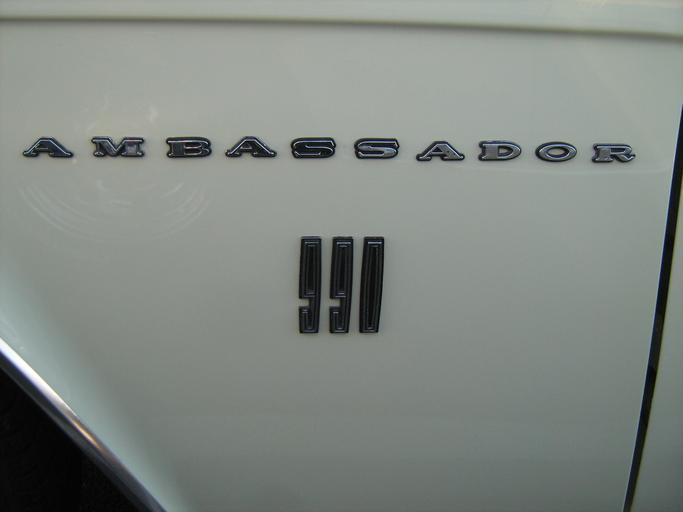 | Keywords: 1966 Ambassador 990 wagon az99.jpg en 1966 Ambassador 990 by American Motors Corporation AMC Detail of the marque nameplate and the model 990 identification on the front fender own 2009-10-17 CZmarlin ” Christopher Ziemnowicz releases all rights but a photo credit would be appreciated if this image is used anywhere other than Wikipedia Please leave a note at Wikipedia http //en wikipedia org/w/index php title User_talk CZmarlin action edit section new here Thank you thumb left Rear left view this car thumb center Rear right view this car thumb left Interior individual adjustable and reclining front seats thumb center Interior instrument panel with AM/FM radio thumb left Interior adjustable tilt steering wheel thumb center The 327 CID 5 36 L V8 engine thumb left Detail of headlight design thumb center Detail of tail lamp design thumb left Front view of this automobile thumb center Detail of the standard roof rack and the one-year only roof design finished in optional two-tone paint white thumb left Detail of the Cross Country model identification used by AMC for its station wagons as well as the optional side hinged rear door AMC Ambassador AMC logos Number 990 on vehicles Photographs by CZmarlin |