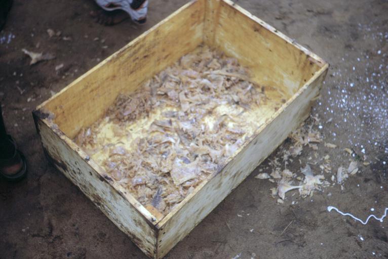 | Keywords: 1968 4 Nigeria CDC.png en This 1968 photograph showed a nearly empty box of dried fish that was being distributed to nutritionally deprived refugees of the Nigerian-Biafran civil war During the Nigerian-Biafran civil war the CDC assisted in delivering food to the refugees However due to a lack of international help health officials could not get enough food to everyone so they relied on a high protein distribution effort i e dried fish dried milk etc that was supplemented with locally-grown carbohydrates such as yams and cassava manioc melons Dr Lyle Conrad and Dr William H Foege established a standard for height and weight for the Nigerian children which before that time did not exist 1968 CDC http //phil cdc gov/phil/details asp CDC/ Dr Lyle Conrad other versions PD-USGov Uploaded with UploadWizard Nigeria in the 1960s Famines in Africa Images from the CDC Public Health Image Library |