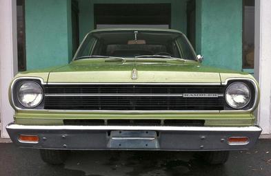 | Keywords: 1968 Rambler American 440 4-door sedan green VA-fe.jpg en Front head on view of a 1968 Rambler American by American Motors Corporation - AMC 440 series 4-door sedan finished in Laurel Green Iridescent paint code - P46A Photographed near Madison Virginia classic car dealer on US-29 2012-12-09 12 57 03 own CZmarlin ” Christopher Ziemnowicz releases all rights but a photo credit would be appreciated if this image is used anywhere other than Wikipedia Please leave a note at Wikipedia http //en wikipedia org/w/index php title User_talk CZmarlin action edit section new here Thank you thumb left Front left side thumb center Front right side thumb left Detail of vent window and outside rear view mirror thumb center Detail of emblems on front fender thumb left Steering wheel and dashboard thumb center Driver's cockpit and dashboard thumb left Interior detail thumb center Detail of rear window thumb left Front seats thumb upright center Rear seats thumb left Detail of model name and C pillar 38 393666666667 -78 238666666667 cc-zero Rambler American Uploaded with UploadWizard Front views of Rambler automobiles Automobile grills |