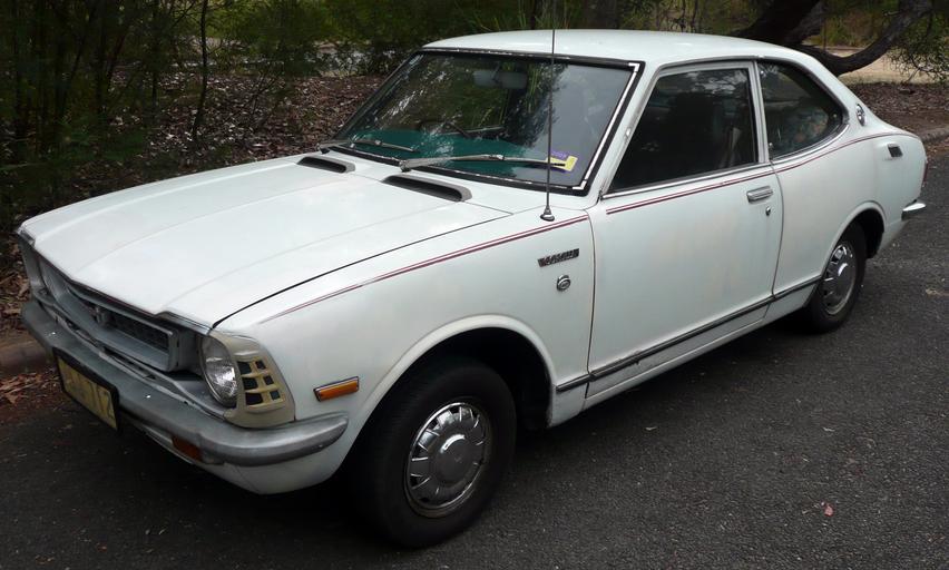 Keywords: 1971-1974 Toyota Corolla (KE25-D) Deluxe coupe 05.jpg 1971 “1974 Toyota Corolla KE25-D Deluxe coupe photographed in Audley New South Wales Australia Own 2009-01-10 OSX Released into the public domain OSX Toyota Corolla E20 White coupes Photographs by OSX |