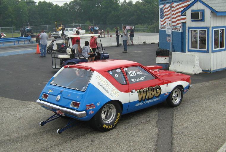 Keywords: 1972 AMC Gremlin veteran dragster 99 WIBG mdD-ru.jpg en The radio 99 WIBG Pro-Stock Gremlin approaching the timing booth after a run down the drag strip Note the wheelie bars This customized 1972 AMC Gremlin is a historic professional dragster that was driven by Rich LaMont and sponsored by radio station 99 WIBG broadcasting in Philadelphia PA This car RUNS the quarter-mile at around 8 75 seconds achieving over 150 mph 240 kph This Pro-Stock racer is restored period correct and raced regularly Photograph taken at Potomac Ramblers automobile club's 2011 All AMC Drag Race Day held at the Capitol Raceway a NHRA sanctioned 1/4 mile asphalt and concrete drag strip located in Crofton Maryland own 2011-06-11 CZmarlin ” Christopher Ziemnowicz releases all rights but a photo credit would be appreciated if this image is used anywhere other than Wikipedia Please leave a note at Wikipedia http //en wikipedia org/w/index php title User_talk CZmarlin action edit section new here Thank you en I the copyright holder of this work hereby release it into the public domain This applies worldwide thumb left Side rear view with open driver's door thumb center Front view of the customized 1972 AMC Gremlin thumb left Race driver's cockpit and controls thumb center Waiting in lanes with other all AMC automobiles thumb left The Radio 99 WIBG Pro-Stock Gremlin doing a burnout at the drag strip thumb center At the starting line for the race the radio 99 WIBG Pro-Stock Gremlin in lane 1 and and a two-seat 1969 AMX finished in Big Bad Orange in lane 2 thumb left The Pro Stock 1972 Gremlin returning from a run down the drag strip thumb center Rear right side view thumb left The 1972 AMC Pro Stock trailer AMC Gremlin AMC Custom cars AMC dragsters Drag strips Automobiles facing right Photographs of flags of the United States |