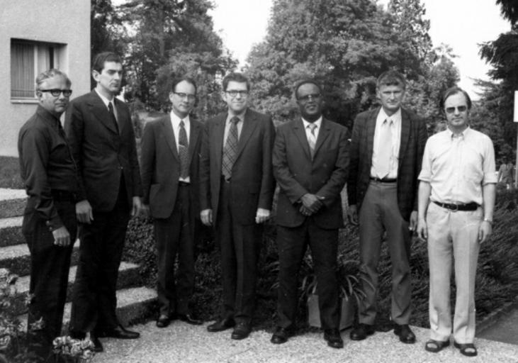 | Keywords: mwc mennonite world conference mennoniteworldconference blackandwhite monochrome white background black and white Executive Committee From left to right: Marvin Hein, Hillsboro, KS. VP for NA; Henrique Ens, Curitiba, Brazil, VP for SA; Takashi Yamada, Kobayashi, Japan, VP for Asia; Paul N. Kraybill, Rosemont, Ill., Executive Secertary; Million Belete, Addis Ababa, Ethiopia, President; Elmer Neufeld, Bluffton, Ohio, Recording Secretary; Heinold Fast, Emden, Germany, VP for Europe. Not pictured: Raymond Schlichting, Hillsboro, KA Treasurer. Citation: Mennonite World Conference Records, 1923-2012. X-009. Mennonite Church USA Archives - Goshen. Goshen, Indiana. Box 19, Folder 10. Executive Committee From left to right: Marvin Hein, Hillsboro, KS. VP for NA; Henrique Ens, Curitiba, Brazil, VP for SA; Takashi Yamada, Kobayashi, Japan, VP for Asia; Paul N. Kraybill, Rosemont, Ill., Executive Secertary; Million Belete, Addis Ababa, Ethiopia, President; Elmer Neufeld, Bluffton, Ohio, Recording Secretary; Heinold Fast, Emden, Germany, VP for Europe. Not pictured: Raymond Schlichting, Hillsboro, KA Treasurer. Citation: Mennonite World Conference Records, 1923-2012. X-009. Mennonite Church USA Archives - Goshen. Goshen, Indiana. Box 19, Folder 10. |