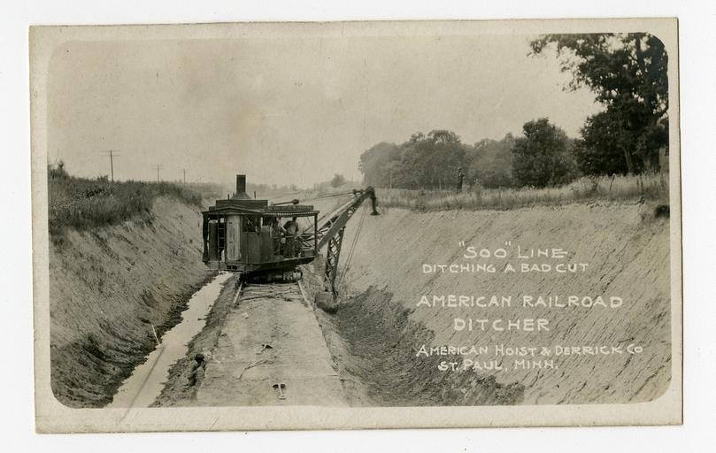Keywords: “Soo” Line ditching a bad cut. American Railroad Ditcher, American Hoist and Derrick Company. St. Paul , Minnesota kanal