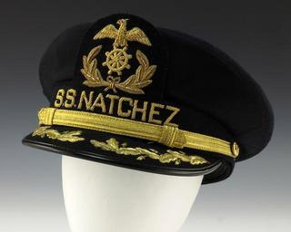 Keywords: 1976 campaign hat a.JPG SS Natchez hat with gold thread embroidering and chinstrap Includes a brown leather sweatband on the inside Given to U S President Gerald Ford by the captain of the SS Natchez on September 25 1976 during Ford's campaign trip down the Mississippi River While on the campaign trip which was about a month after Ford was nominated for re-election as President of the United States Ford campaigned from the SS Natchez during the 6-hour Saturday cruise from Lutcher Louisiana to Jackson Square New Orleans <ref name South > cite news 1 New York Times September 26 1976 Ford Tells South 'I Want Your Vote'; Talks On Steamboat Depict Carter As A Free-Spending Liberal Ford Tells South 'I Want Your Vote' An Old South Scene Democrats Among Guests James M Naughton November 18 2012 http //select nytimes com/gst/abstract html res F30C12FE385910728DDDAF0A94D1405B868BF1D3 </ref><ref> Daily Diary Of President Gerald R Ford September 25 1976 Daily Diary Of President Gerald R Ford White House November 18 2012 http //www fordlibrarymuseum gov/library/document/0036/pdd760925 pdf </ref> a historic park in the French Quarter of New Orleans Louisiana From there Ford planned to spend three days in the south appealing to Southern conservatism by depicting his opponent Jimmy Carter as a free-spending liberal <ref name South /> The Natchez trip was key to Ford ™s campaign strategy to garner votes in southern states 2012-07-24 Gerald R Ford Presidential Museum n/a Accession Number 1987 333 1 Donation Date September 25 1976 Reflist Gerald R Ford Presidential Library and Museum-cooperation PD-USGov 1976 Campaign materials at the Gerald R Ford Presidential Museum Gerald Ford presidential campaign 1976 Hats Natchez ship 1975 Uploaded with UploadWizard |
