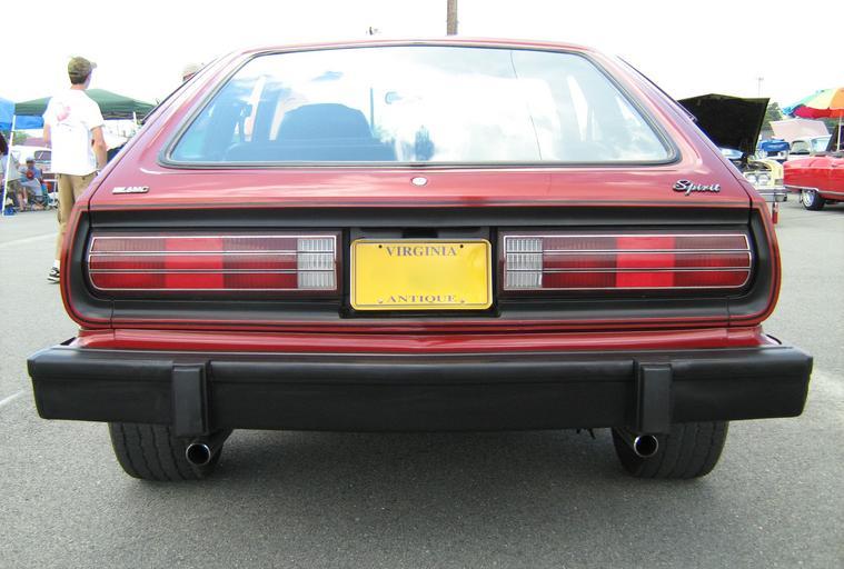 | Keywords: 1979 AMC Spirit GT V8 Russet VR.jpg en 1979 AMC Spirit GT A subcompact 2-door liftback with factory 304 CID 5 0 L V8 engine and four-speed manual transmission Finished in Russet Metallic Aftermarket wheels and dual exhaust Rear view own 2010-06-19 CZmarlin ” Christopher Ziemnowicz releases all rights but a photo credit would be appreciated if this image is used anywhere other than Wikipedia Please leave a note at Wikipedia http //en wikipedia org/w/index php title User_talk CZmarlin action edit section new here Thank you en I the copyright holder of this work hereby release it into the public domain This applies worldwide thumb left Right rear thumb center Right front thumb left Front view thumb center Side left thumb left Left rear thumb center The standard V8 engine thumb left Driver's perspective of the steering wheel and instrument panel thumb center Standard interior with GT package and center console Rallye Gauges and four-speed transmission thumb center Spirit GT emblems on front fender 1979 AMC automobiles AMC Spirit Rear views of automobiles |