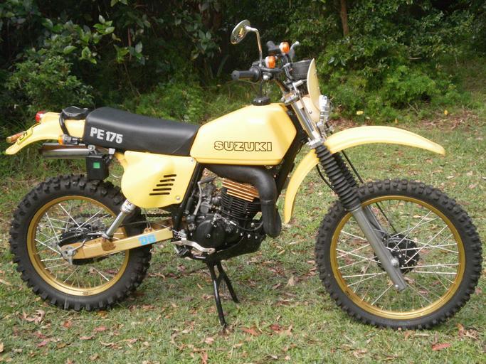 | Keywords: 1979 Suzuki PE175N enduro 01.jpg Suzuki PE175N enduro motorcycle E24 Australia Includes DG head and swing-arm Fox air-shox own work Photographed in Sydney Australia 2012-01-08 Lukeb1961 cc-zero Original upload log en wikipedia FtCG page en wikipedia 1979_Suzuki_PE175N_enduro_01 jpg wikitable Date/Time Dimensions User Comment - 06 30 8 January 2012 3 648 × 2 736 4 940 417 bytes Lukeb1961 w en <nowiki> Suzuki PE175N enduro motorcycle own work 08 January 2012 lukeb1961 see below </nowiki> Suzuki PE Enduro motorcycles Motorcycle swingarm |